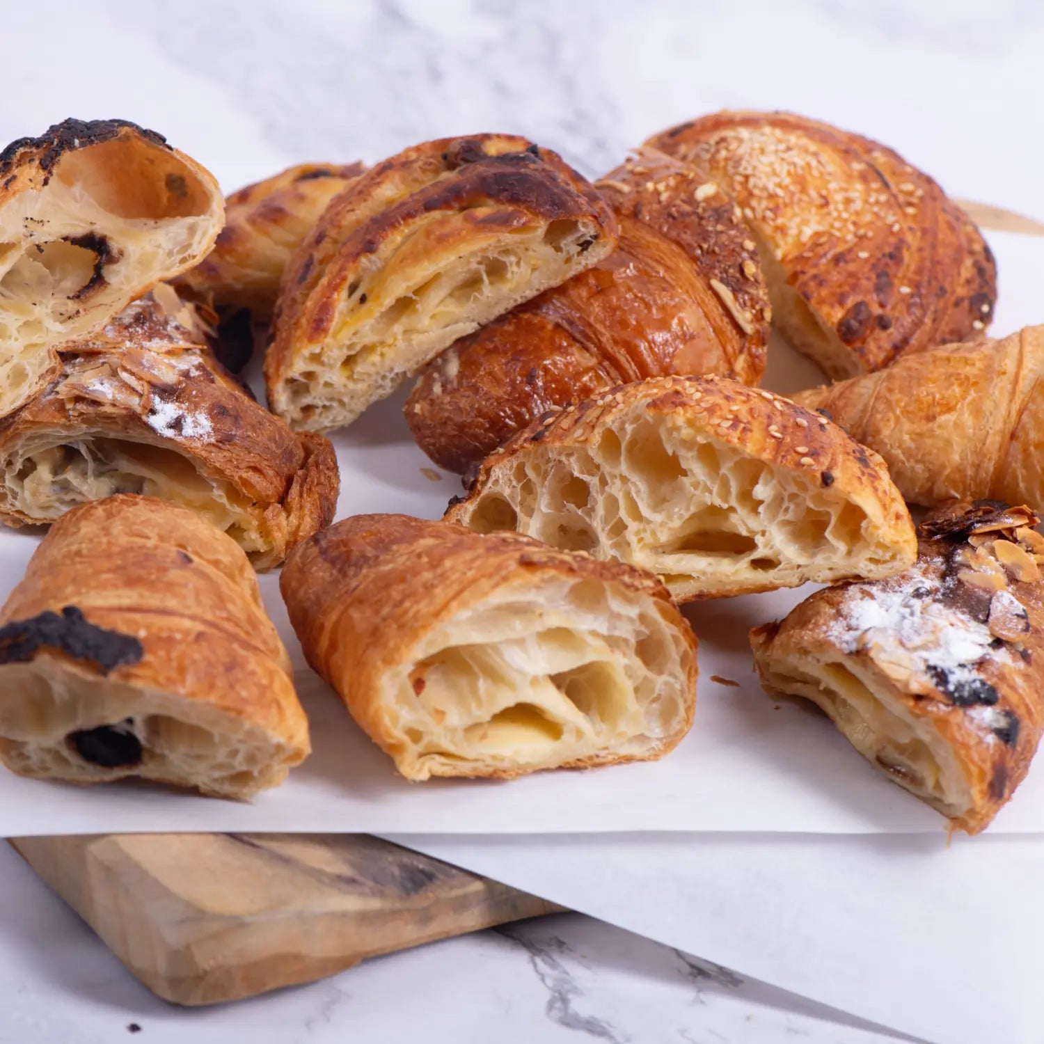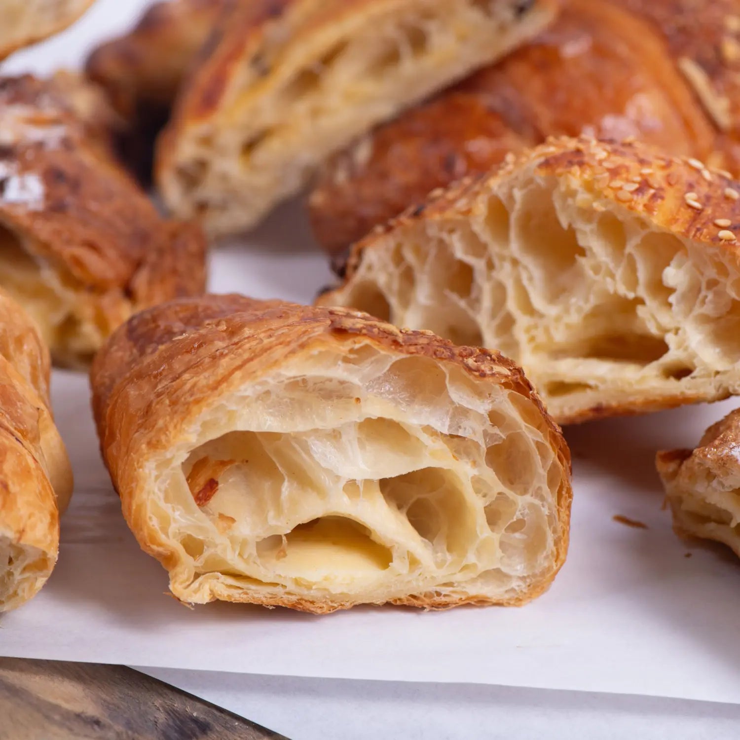 Кутия 10 бр сладки кроасани нарязани на две