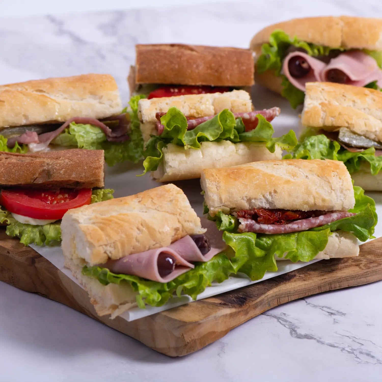 Кутия с 10 бр кроасандвичи микс нарязани на две